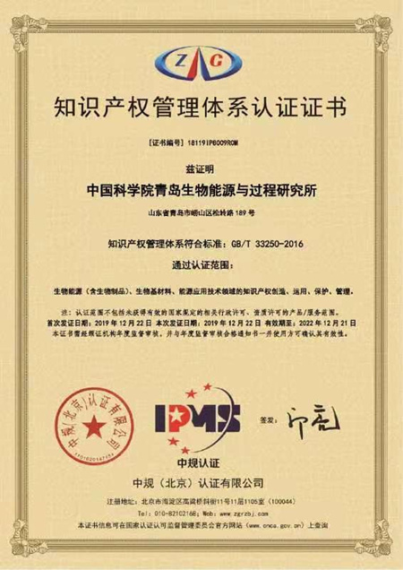 12月22日,青島能源所正式通過(guò)《科研組織知識(shí)產(chǎn)權(quán)管理規(guī)范》(GB/T33250-2016)國(guó)家標(biāo)準(zhǔn)認(rèn)證,獲得知識(shí)產(chǎn)權(quán)管理體系認(rèn)證證書(shū),通過(guò)認(rèn)證的范圍覆蓋生物能源(含生物制品)、生物基材料、能源應(yīng)用技術(shù)領(lǐng)域的知識(shí)產(chǎn)權(quán)創(chuàng)造、運(yùn)用、保護(hù)、管理。我所成為山東省內(nèi)首家、中科院內(nèi)第十家通過(guò)《科研組織知識(shí)產(chǎn)權(quán)管理規(guī)范》國(guó)家標(biāo)準(zhǔn)認(rèn)證的科研機(jī)構(gòu)。