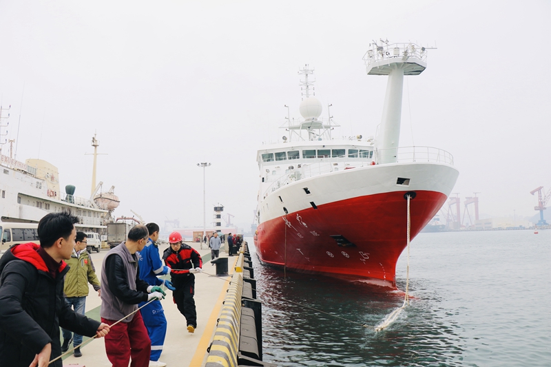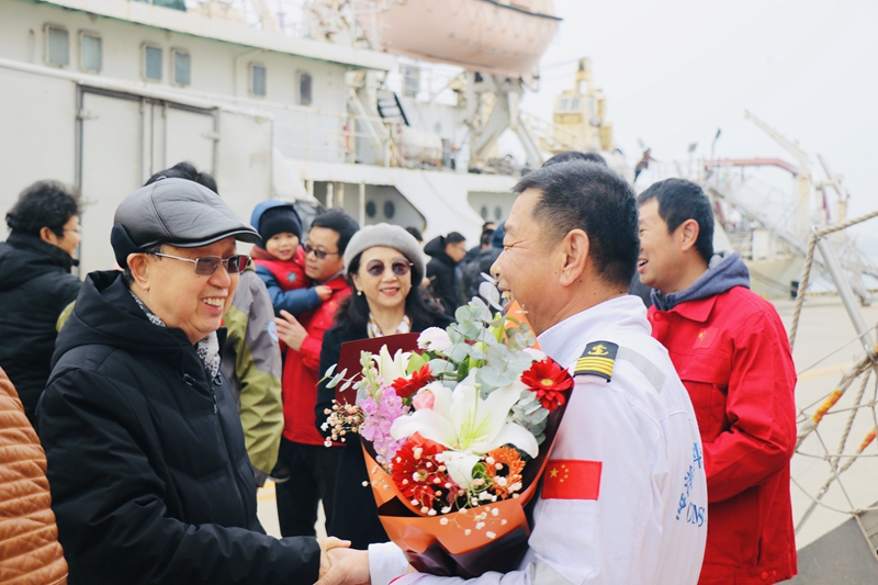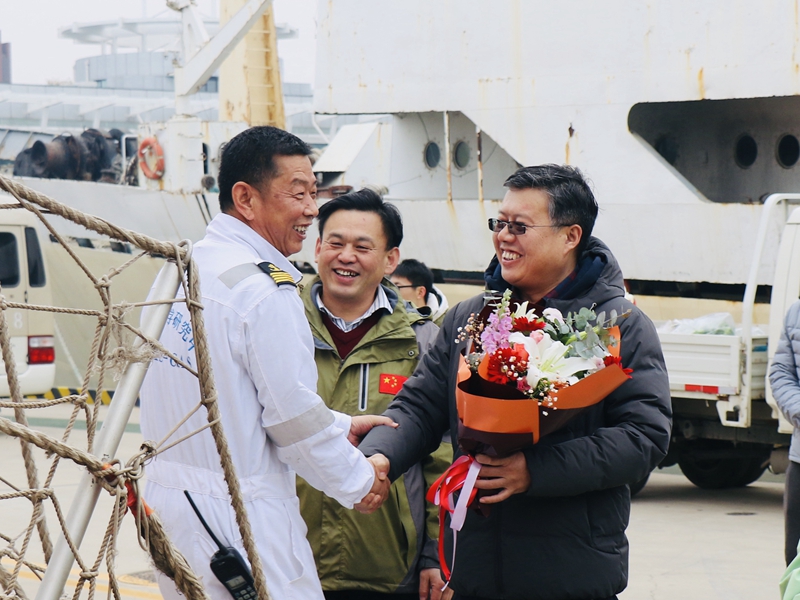 1月5日,“科學(xué)”號(hào)科考船圓滿(mǎn)完成國(guó)家自然科學(xué)基金委2019年西太平洋開(kāi)放共享航次科考任務(wù),返回青島母港。胡敦欣院士、王輝書(shū)記以及科考船運(yùn)管中心負(fù)責(zé)人、相關(guān)部門(mén)同事到碼頭迎接。