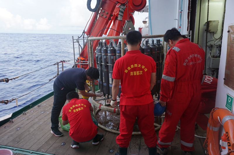 航次搭載的國(guó)家自然基金項(xiàng)目在多個(gè)前沿領(lǐng)域取得重要進(jìn)展。中科院海洋所孫虎元研究員首次進(jìn)行了3000米以深分層海水腐蝕性試驗(yàn),獲得西太平洋5000米深度國(guó)產(chǎn)X80鋼腐蝕速率的連續(xù)觀(guān)測(cè)數(shù)據(jù)。廈門(mén)大學(xué)黃邦欽課題組首次在西太平洋沿赤道斷面獲得了大空間尺度的高分辨率、高靈敏度浮游生物呼吸數(shù)據(jù)。中科院海洋所郭術(shù)津博士首次調(diào)查了馬里亞納海溝鄰近海域固氮藍(lán)藻的生物量及其垂直分布。中國(guó)海洋大學(xué)楊桂朋課題組首次對(duì)西太平洋海域生源硫化物實(shí)現(xiàn)空間大尺度觀(guān)測(cè)。華東師范大學(xué)李道季課題組針對(duì)西太海域深層水中微塑料賦存特征使用了大體積(8噸)原位過(guò)濾方法,解決了深海采樣體積不足等問(wèn)題。此外,航次還獲取了海洋上1500米層高空間分辨率湍流結(jié)構(gòu)剖面數(shù)據(jù),為低緯度西太平洋湍流混合研究提供了重要基礎(chǔ)。這些觀(guān)測(cè)將極大地推動(dòng)我國(guó)在西太平洋海洋科學(xué)與技術(shù)相關(guān)領(lǐng)域取得持續(xù)突破。