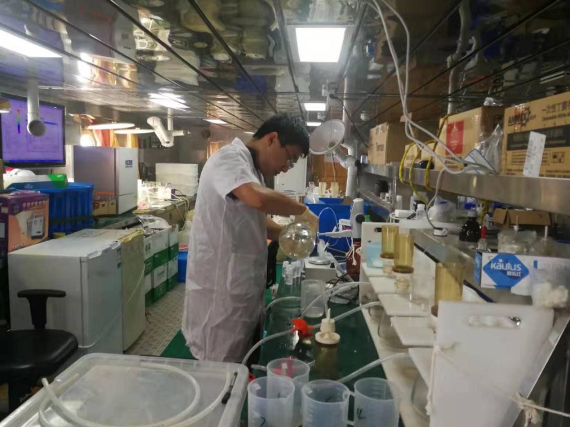 本航次2019年10月3號(hào)從青島起航,歷時(shí)95天,航程14000余海里,是“科學(xué)”號(hào)首航以來(lái)離開(kāi)國(guó)內(nèi)航程最長(zhǎng)、時(shí)間最久的一個(gè)航次,搭載了來(lái)自中科院海洋所、聲學(xué)所、南海所、深海所、廣州地化所,以及中國(guó)海洋大學(xué)、廈門(mén)大學(xué)、華東師范大學(xué)、山東大學(xué)等12家科研院所和高校的30位船隊(duì)員、44位科學(xué)家參加科學(xué)考察,搭載的40項(xiàng)國(guó)家自然科學(xué)基金項(xiàng)目涵蓋了物理海洋、海洋生物、海洋化學(xué)、海洋生態(tài)和海洋地質(zhì)等多個(gè)學(xué)科領(lǐng)域。航次分為兩個(gè)航段,中間靠泊密克羅尼西亞波納佩港補(bǔ)給,張林林研究員和胡石建研究員分別擔(dān)任第一、第二航段首席科學(xué)家,賈凡副研究員和王富軍副研究員擔(dān)任隊(duì)長(zhǎng),孫其軍擔(dān)任船長(zhǎng)。
