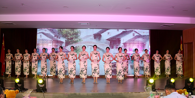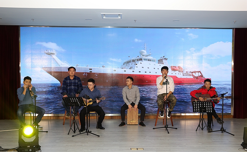 聯(lián)歡會以一首飽含深情的《我和我的祖國》拉開帷幕。男生獨唱《滾滾長江東逝水》慷慨激昂、蕩氣回腸,唱出了澎湃豪邁的英雄氣概。詩詞朗誦《沁園春 雪》意境壯美、氣勢恢宏、感情奔放、胸襟豪邁,孫衛(wèi)東研究員自己創(chuàng)作的《臨江仙 恩師》表達了對恩師的崇敬之情。所領(lǐng)導合唱的一首《光陰的故事》仿佛帶我們回到了青春年少。女生獨唱《夜空中最亮的星》用高亢嘹亮的聲音照亮了尋夢人前行的方向。情景劇《垃圾分類》在詼諧幽默的氛圍中普及了環(huán)保知識,倡導大家積極參與垃圾分類。18位女同事帶來的《旗袍表演》展現(xiàn)了東方女性的柔和婉約端莊優(yōu)雅之美。自彈自唱的清新民謠《橋邊姑娘》展現(xiàn)了船隊小伙兒們的多彩多藝和鋼鐵直男的柔情一面。古典舞蹈《雪落下的聲音》舞姿曼妙優(yōu)美,仿佛置身唯美雪景。