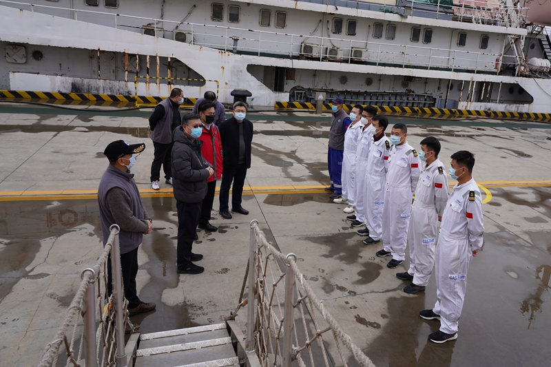 王輝書記向“科學(xué)一號(hào)”船長了解防疫情況