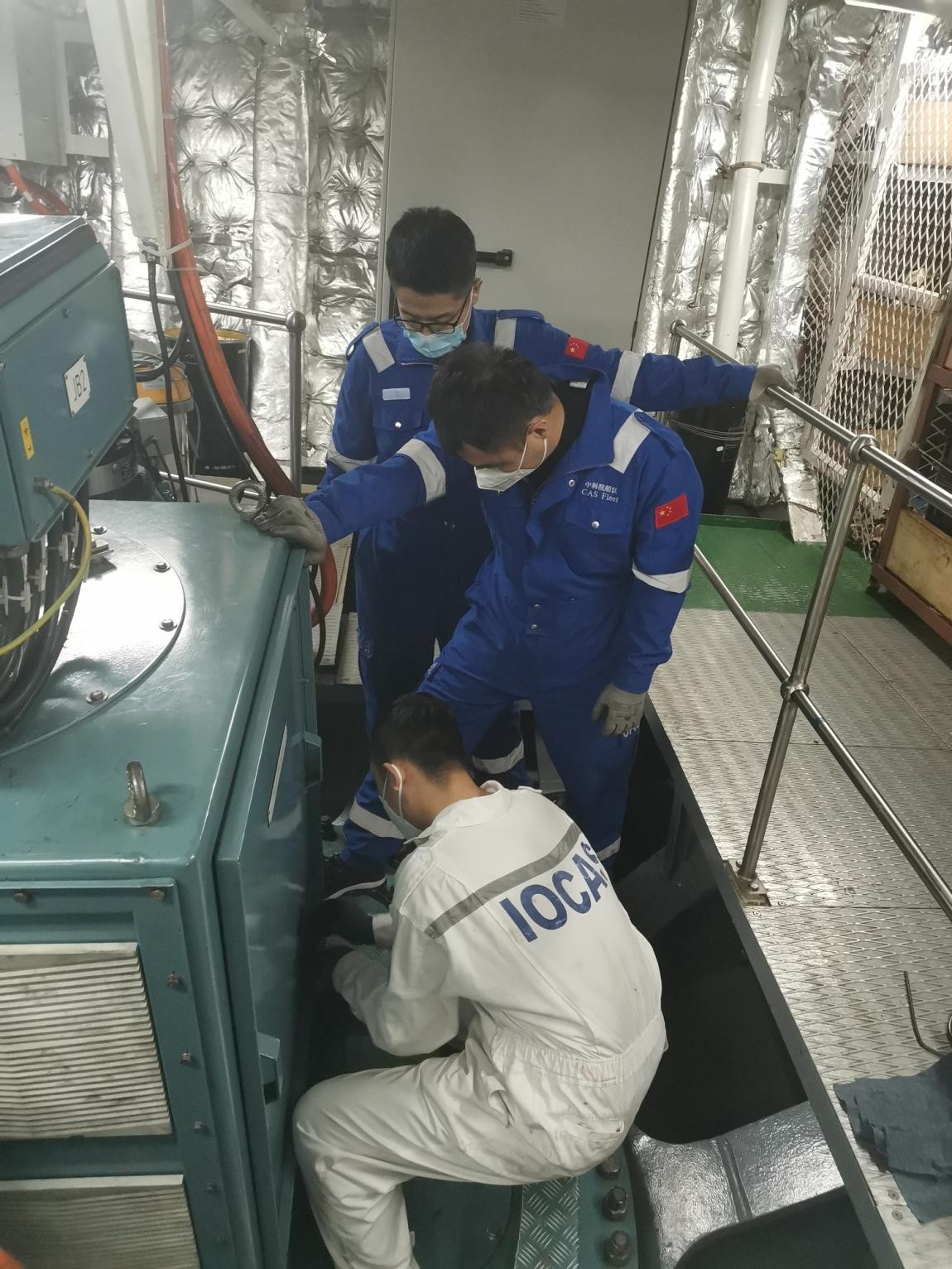 “機(jī)艙是船舶的心臟,防疫期間不能讓機(jī)艙設(shè)備掉鏈子”,“科學(xué)”號(hào)輪機(jī)長姜良優(yōu)說到。因?yàn)橐咔?,船舶設(shè)備商無法到船進(jìn)行設(shè)備維修,正常航修工程也無法進(jìn)行,為了最大程度保證維修進(jìn)度,姜良優(yōu)和他的同事們?nèi)翰呷毫?,依靠自己的專業(yè)知識(shí)使正在進(jìn)行的維修工程順利收尾,并順利完成吊艙季度維護(hù)保養(yǎng)工作。