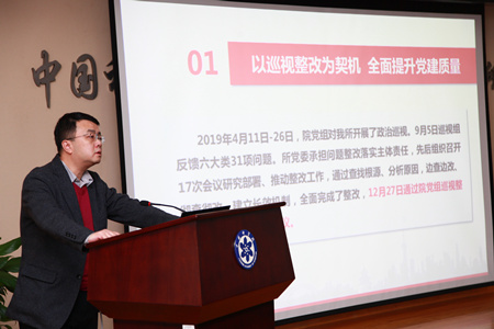 會(huì)上,研究所黨委書(shū)記、副所長(zhǎng)彭輝,黨委副書(shū)記、紀(jì)委書(shū)記馮埃生,副所長(zhǎng)呂雪峰,黨委副書(shū)記許輝分別作了分管工作報(bào)告,詳細(xì)匯報(bào)了2019年分管工作推進(jìn)情況、對(duì)分管工作的思考及2020年工作思路。