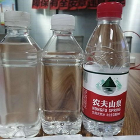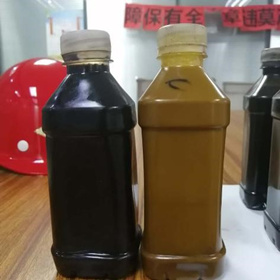 右圖產(chǎn)品:1號(hào)生物質(zhì)溶劑油(左),2號(hào)二代生物柴油(中);右側(cè)為比色用的礦泉水(右)