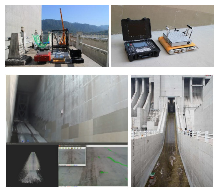 大型水電站混凝土泄水設(shè)施(深孔、表孔、排漂孔等)缺陷檢測均采用搭設(shè)滿堂腳手架檢修平臺并由人工檢測的傳統(tǒng)方式,存在安全風(fēng)險高、檢修周期長、作業(yè)難度大且費(fèi)用高等不足。