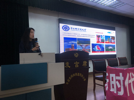 副研究員李鴻妹以“海洋-拯救全球變暖的大英雄”為題,生動(dòng)有趣的講解了科學(xué)家發(fā)現(xiàn)海洋、調(diào)查海洋的科考過(guò)程,并探索了海洋在吸收溫室氣體二氧化碳中發(fā)揮的作用。博士研究生張妍以“微藻—奇妙的水中小精靈”為題,深入淺出的講解科學(xué)家如何認(rèn)識(shí)、培養(yǎng)、開(kāi)發(fā)不同種類(lèi)的微藻以及其在能源、環(huán)境、食品、健康等領(lǐng)域不可替代的作用。碩士研究生王鑫從介紹傳統(tǒng)能源的種類(lèi)和特點(diǎn)入手,運(yùn)用視頻與講解結(jié)合的方式介紹了能源的形成過(guò)程,并且講解了新型能源的種類(lèi)和優(yōu)點(diǎn)以及發(fā)展新型能源的原因和急迫性。