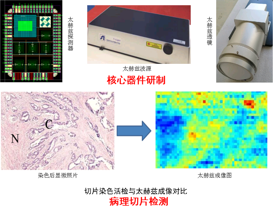 在項(xiàng)目負(fù)責(zé)人祁峰研究員的帶領(lǐng)下,針對(duì)太赫茲癌癥檢測(cè)成像分辨率不足的技術(shù)瓶頸和國(guó)產(chǎn)太赫茲核心器件缺乏等問(wèn)題,科研人員從波動(dòng)性出發(fā)提出并實(shí)現(xiàn)了超分辨成像方法,自主開發(fā)了包括波源、透鏡以及探測(cè)器等核心器件并實(shí)現(xiàn)了國(guó)產(chǎn)化。其中波源和透鏡主要性能指標(biāo)超國(guó)外同類進(jìn)口產(chǎn)品,大幅提高了太赫茲成像系統(tǒng)性能。