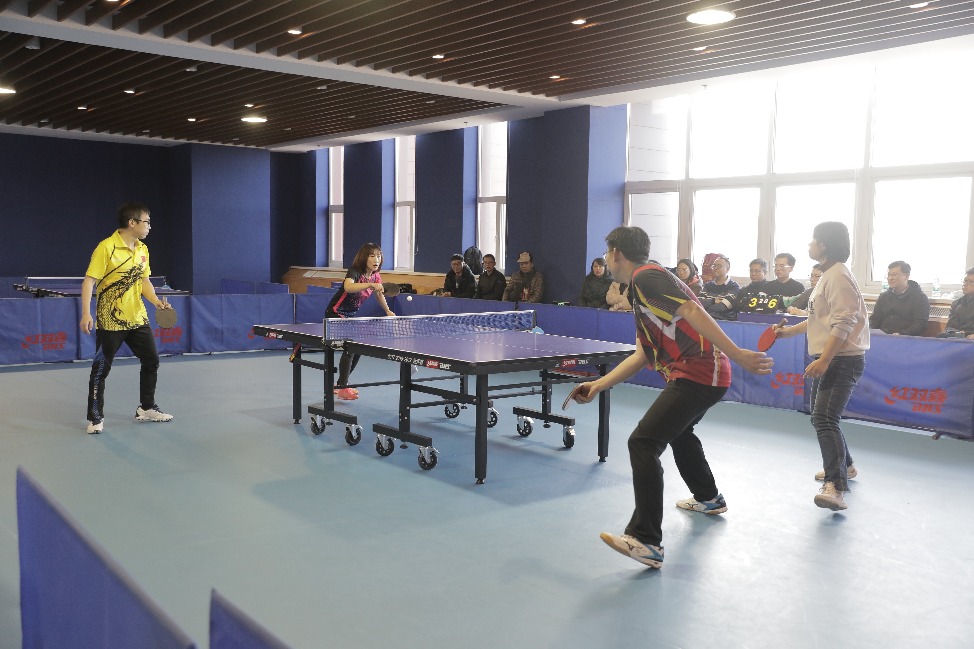 本屆比賽在創(chuàng)新路所區(qū)乒乓球館舉行,旨在推動(dòng)全民健身運(yùn)動(dòng)深入開展,引領(lǐng)職工健康生活方式,豐富職工業(yè)余文化生活,營造和諧、奮進(jìn)的文化氛圍。比賽設(shè)男子單打、女子單打和混合團(tuán)體三個(gè)項(xiàng)目,共有來自14個(gè)分會(huì)的近100名職工、12支球隊(duì)參賽,單項(xiàng)賽和團(tuán)體賽均取前三名進(jìn)行頒獎(jiǎng)。參賽各隊(duì)秉持友誼第一、比賽第二的體育精神,賽場氣氛緊張激烈、和諧友好。運(yùn)動(dòng)員們一拍拍扣殺,一次次猛攻,時(shí)時(shí)點(diǎn)燃觀眾的激情,場上叫好助威聲此起彼伏。所工會(huì)在半決賽、決賽階段利用所抖音平臺(tái)對(duì)賽事進(jìn)行了直播。