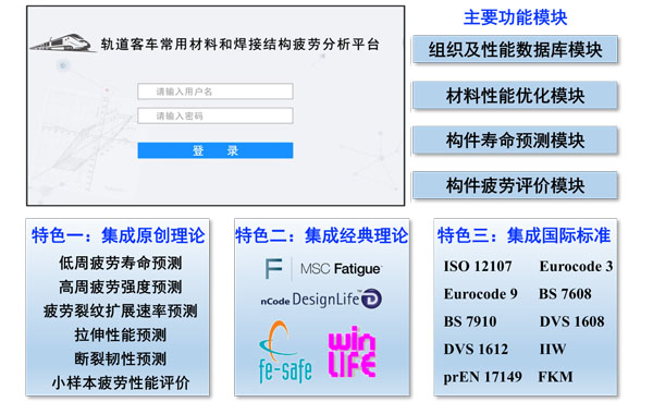 圖1. 軌道客車常用材料和焊接結(jié)構(gòu)疲勞分析平臺(tái)主要模塊與特色