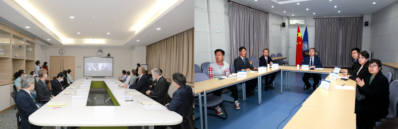 隨后,李超倫副所長與顏慶云副校長代表雙方視頻同步簽約,簽約后雙方隔空合影。
