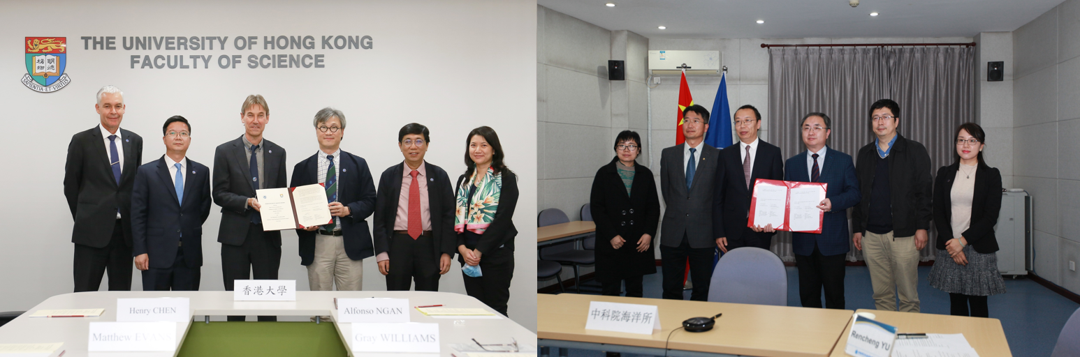 11月24日,通過香港、青島兩地視頻接入,中科院海洋所與香港大學(xué)在線簽署關(guān)于建立“海洋生態(tài)與環(huán)境科學(xué)聯(lián)合實驗室”的合作備忘錄。香港中聯(lián)辦教育科技部處長陳恒,香港大學(xué)副校長顏慶云、支志明院士、理學(xué)院院長Matthew Evans、太古海洋研究所所長Gray Williams,海洋所所長王凡、副所長李超倫、所務(wù)委員于仁成、國際合作辦公室及相關(guān)科學(xué)家參加視頻簽約會。