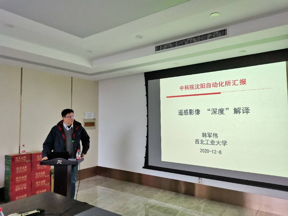 韓軍偉以《遙感影像‘深度’解譯》為題作報告,講解了影像解譯這一項在遙感方面具有重要的民用和軍事應用價值的關(guān)鍵技術(shù)。遙感影像解譯是遙感大數(shù)據(jù)信息挖掘與提取的關(guān)鍵技術(shù),具有重要的民用和軍事應用價值,也是近年來遙感應用領(lǐng)域的研究熱點問題。韓軍偉首先介紹了深度學習在高分遙感影像解譯方面的一些典型應用,針對這一前沿領(lǐng)域發(fā)布了兩個公開的高分圖像數(shù)據(jù)庫。其次,針對高分遙感影像解譯存在的一些難點問題和不同的應用需求,提出了幾種基于弱監(jiān)督學習/全監(jiān)督學習的目標檢測和圖像場景分類方法。報告現(xiàn)場氣氛熱烈,與會人員積極踴躍參與提問與討論。