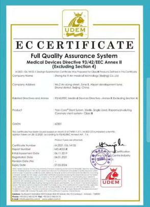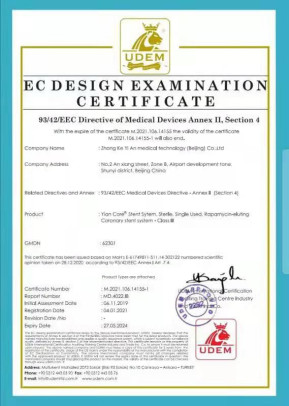 2021年1月4日,由我負(fù)責(zé)全程研發(fā)、中科益安醫(yī)療科技(北京)股份有限公司生產(chǎn)的新型心血管支架產(chǎn)品獲得歐盟認(rèn)證機(jī)構(gòu)頒發(fā)的CE證書,取得了進(jìn)入歐盟國家銷售的通行證書,這將有利于產(chǎn)品在國際市場(chǎng)銷售。