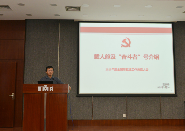 榮獲2020年度中國科學(xué)院“優(yōu)秀共產(chǎn)黨員”稱號(hào)的雷家峰同志作了黨員在科技重大任務(wù)攻關(guān)中發(fā)揮先鋒模范作用的體會(huì)報(bào)告。他的報(bào)告詳細(xì)介紹了輕質(zhì)高強(qiáng)材料研究部科研團(tuán)隊(duì)牽頭完成“奮斗者”號(hào)全海深潛水器鈦合金載人艙球殼項(xiàng)目、保障重大科研攻關(guān)任務(wù)順利實(shí)施的情況,以豐富圖片再現(xiàn)了黨組織團(tuán)結(jié)黨員職工充分發(fā)揮“兩個(gè)作用”、所內(nèi)外相關(guān)科研攻關(guān)團(tuán)隊(duì)和科研人員通力配合的奮斗場景,展示了我所科研人員勇于創(chuàng)新、作風(fēng)扎實(shí)、攻堅(jiān)克難、擔(dān)當(dāng)作為的精神風(fēng)貌。