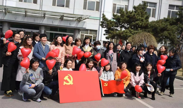 上午11時(shí)許,女職工興高采烈,手持紅色氣球來到廣場,廣場上立刻成為一片紅色的海洋。她們紛紛與黨旗合影,用燦爛的笑容、飽滿的精神面貌表達(dá)聽黨話、跟黨走的決心,“我和黨旗合個(gè)影”充分抒發(fā)了金屬所女職工對黨的深厚感情和美好祝福。在工會主席孫東明熱情洋溢的講話后,健步走號令響起,大家從葛庭燧樓前出發(fā),沐浴著陽光、春風(fēng)和花香,健步走在風(fēng)景秀麗的南運(yùn)河岸上,盡情享受健身走的快樂。