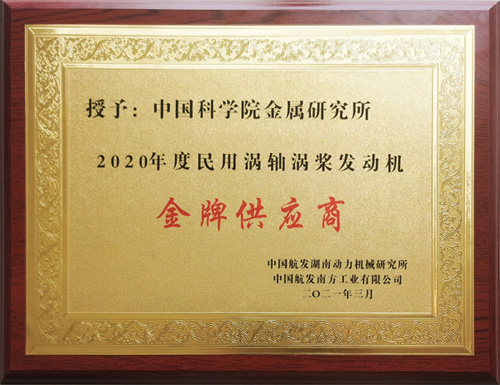 3月29日,在湖南株洲召開的民用渦軸渦槳及輔助動力項目年度工作會上,金屬所被中國航發(fā)湖南動力機械研究所和中國航發(fā)南方工業(yè)有限公司授予2020年度民用渦軸渦槳發(fā)動機金牌供應商。
