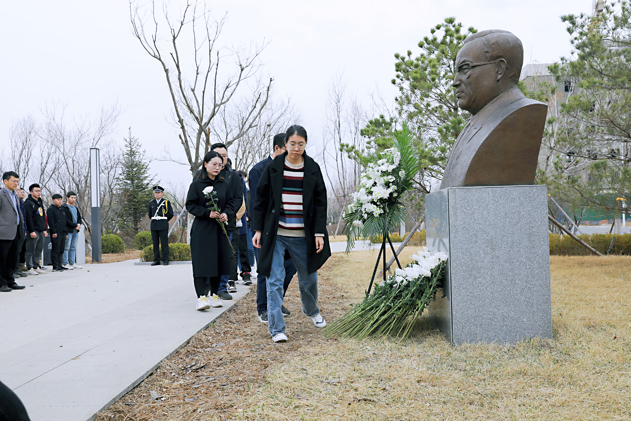 向蔣新松像獻(xiàn)花