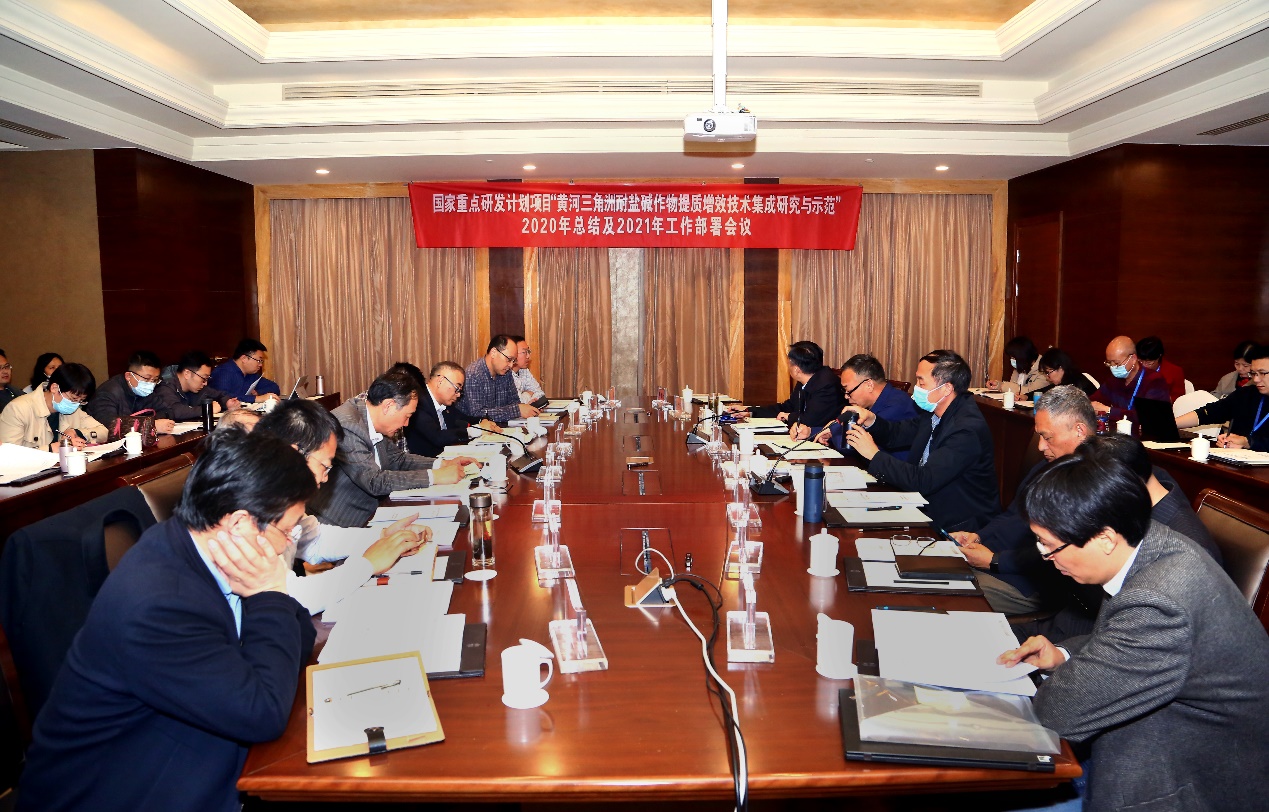 3月30日,國家重點研發(fā)計劃“主要經(jīng)濟作物優(yōu)質高產(chǎn)與產(chǎn)業(yè)提質增效科技創(chuàng)新”專項 “黃河三角洲耐鹽堿作物提質增效技術集成研究與示范”項目階段總結交流暨2021年工作部署會議在黃河三角洲農(nóng)高示范區(qū)召開。江南大學金征宇教授、中國農(nóng)業(yè)科學院刁現(xiàn)民研究員、中國科學院遺傳與發(fā)育生物學研究所農(nóng)業(yè)資源研究中心劉小京研究員、中國科學院地理科學與資源研究所歐陽竹研究員、山東省農(nóng)業(yè)科學院劉兆輝研究員作為項目咨詢專家與會指導。項目各課題負責人及科研骨干40余人參加會議。中國科學院科技促進發(fā)展局項目主管段瑞,中國科學院煙臺海岸帶研究所常務副所長楊紅生、原黨委書記高玲瑜,黃河三角洲農(nóng)業(yè)高新技術產(chǎn)業(yè)示范區(qū)管委會副主任畢建明出席會議。項目依托單位中國科學院煙臺海岸帶研究所科技處處長王德主持會議。