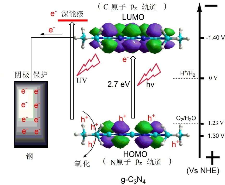 類石墨相 g-C3N4材料的光電化學(xué)陰極保護(hù)機(jī)制示意圖