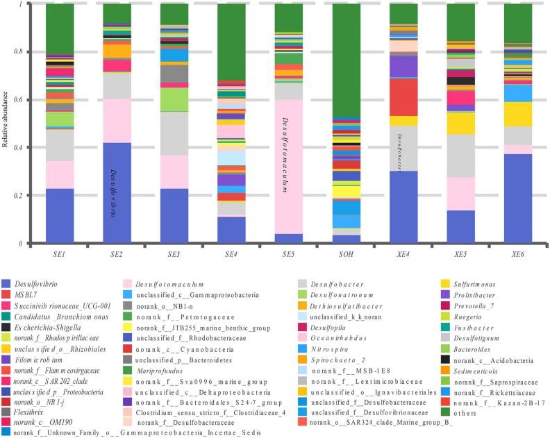 鋼鐵腐蝕銹層中細(xì)菌群落在屬水平上的相對豐度