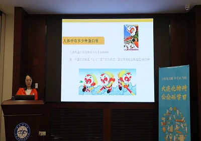 在科普講座環(huán)節(jié)中,李仁貴研究員的《探索太陽的奧秘》介紹了在我國能源現(xiàn)狀和世界能源發(fā)展趨勢下,太陽能作為新興能源,有哪些利用策略,大連化物所有哪些重要進(jìn)展。博士研究生賀敏的《蛋白質(zhì)“七十二”變》向觀眾普及了蛋白質(zhì)的概念、作用等知識,并介紹了可以揭示生命奧秘的蛋白質(zhì)組學(xué)研究。博士研究生丁大雙的《生活中的光》通過不同角度介紹了生活中各種各樣的光,并解釋了生活中的光學(xué)器件和光學(xué)現(xiàn)象背后的物理機(jī)制和工作原理。博士研究生楊超的《吃貨博士的干飯趣事與煩惱》從一個吃貨的角度解讀了煮雞蛋、皮皮蝦、山藥和菠蘿中蘊含的有趣的科學(xué)道理。