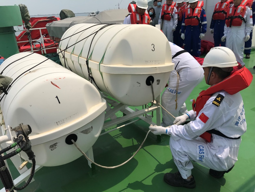 5月21日上午,中國科學院煙臺海岸帶研究所綜合辦公室組織部分專職、兼職安全員觀摩“創(chuàng)新一”號科考船安全演習。研究所紀委書記王曉斌到場并講話。他說,安全是做好一切工作的基礎,科考船上的安全管理有其特殊性,船上安全演練是常態(tài)化的工作,綜合辦公室組織安全員來船上觀摩安全演練,也是一次發(fā)現(xiàn)問題隱患、相互學習的機會。