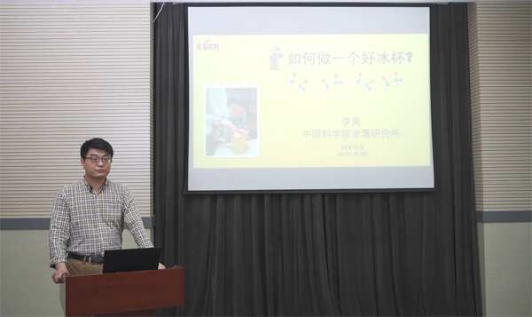 在科學(xué)公開課環(huán)節(jié)中,李昺研究員首先以“如何做一個(gè)好冰杯”為題,從材料在人類進(jìn)化過(guò)程中所扮演的重要角色展開,深入淺出地介紹了相變材料的概念、原理以及應(yīng)用前景,充分展示了新型功能材料的神奇妙用。