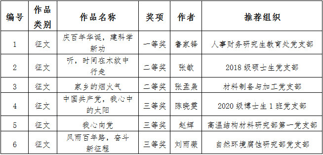 經(jīng)過評審,各類作品共評選出一等獎9個、二等獎25個、三等獎42個、參與獎101個。12個黨支部獲得優(yōu)秀組織獎。