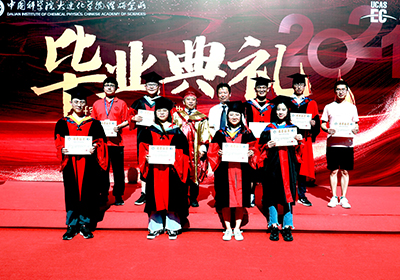 所學(xué)位評定委員會副主任周永貴研究員宣讀了大連化物所2021年研究生學(xué)位授予及擬授予名單。大連化物所8名學(xué)位評定委員會委員為參加典禮的畢業(yè)研究生代表頒發(fā)了畢業(yè)證書并扶正流蘇。