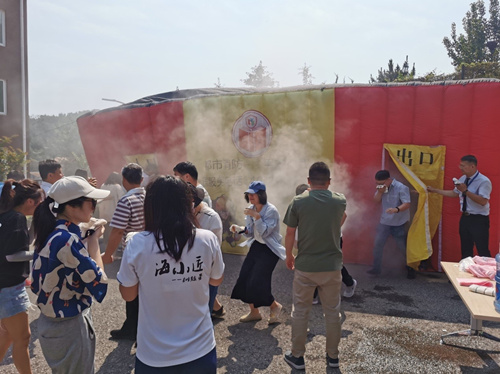 演練則設(shè)置了模擬火災(zāi)逃生屋,布置場景、散布煙霧,模擬出逼真的火災(zāi)現(xiàn)場。在沒有照明、濃煙密布的情況下,參加演練人員濕毛巾捂住口鼻、低下身體,按照安全逃生要領(lǐng)“逃”出火災(zāi)現(xiàn)場,體驗火災(zāi)發(fā)生后如何在狹小黑暗的空間里疏散逃生和實施自救。