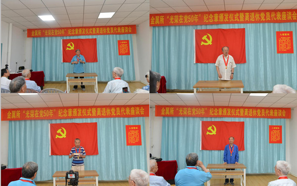 6月24日,所黨委組織頒發(fā)“光榮在黨50年”紀念章,金屬所共有84位老黨員獲此殊榮。