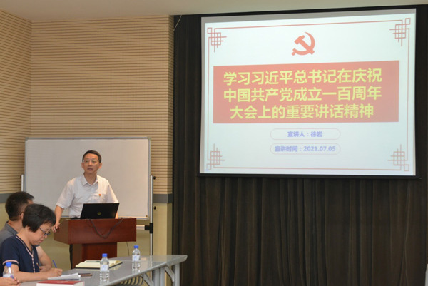 會(huì)上,徐巖書(shū)記作了《學(xué)習(xí)習(xí)近平總書(shū)記在慶祝中國(guó)共產(chǎn)黨成立一百周年大會(huì)上的重要講話(huà)精神》的主題交流報(bào)告。報(bào)告從目的意義和莊嚴(yán)宣告、初心使命和偉大成就、偉大建黨精神、致敬英雄、以史為鑒與開(kāi)創(chuàng)未來(lái)、祖國(guó)統(tǒng)一大業(yè)、寄語(yǔ)青年、向全黨發(fā)出號(hào)召、展望未來(lái)等九個(gè)方面,分享了學(xué)習(xí)習(xí)近平總書(shū)記重要講話(huà)的心得體會(huì)。徐巖書(shū)記指出,習(xí)近平總書(shū)記的重要講話(huà),高屋建瓴、思想深刻、內(nèi)涵豐富,具有很強(qiáng)的政治性、思想性、理論性和指導(dǎo)性,是一篇馬克思主義的綱領(lǐng)性文獻(xiàn),為全黨全國(guó)各族人民向第二個(gè)百年奮斗目標(biāo)邁進(jìn)指明了前進(jìn)方向、提供了根本遵循。