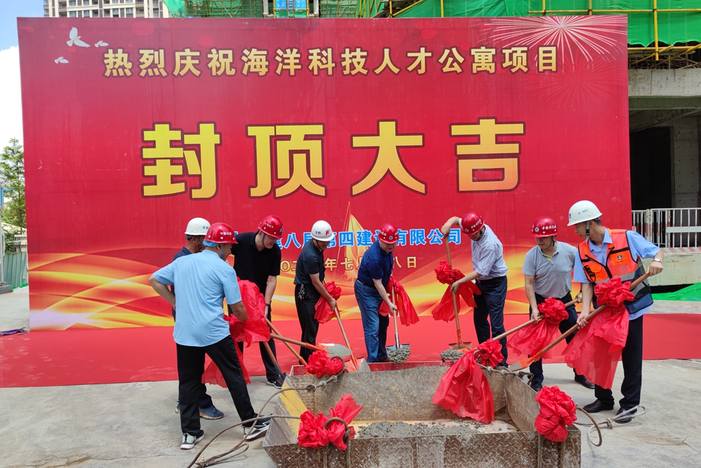 7月18日上午,中國(guó)科學(xué)院海洋研究所海洋科技人才公寓項(xiàng)目舉行主體封頂儀式,現(xiàn)場(chǎng)氣氛隆重,聳立的大樓主體被一條條紅色祝福標(biāo)語(yǔ)裝點(diǎn)得格外喜慶。