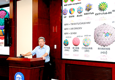 報告中,饒子和詳細介紹了其在解析COVID-19病原體SARS-CoV-2的一系列工作,通過構建SARS-CoV-2巨大的蛋白質復合體,以結構生物學視角研究了SARS-CoV-2在宿主細胞中的復制等過程,為開發(fā)SARS-CoV-2抗病毒藥物提供了思路。