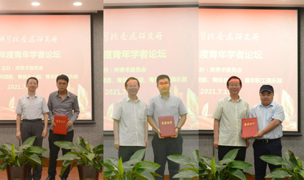 經(jīng)評(píng)委現(xiàn)場(chǎng)打分,本次論壇共評(píng)選產(chǎn)生一等獎(jiǎng)2名(獲獎(jiǎng)人:王政彬、楊勇強(qiáng)),二等獎(jiǎng)4名(獲獎(jiǎng)人:劉洋、高明浩、昝宇寧、王斌),三等獎(jiǎng)6名(獲獎(jiǎng)人:姚婷婷、馬會(huì)、徐偉、張瑞、王旻、羅頤秀),其余報(bào)告人獲得紀(jì)念獎(jiǎng)。同時(shí),論壇通過(guò)職工和研究生掃碼投票的方式推選出昝宇寧博士為本次論壇的“最佳人氣獎(jiǎng)”報(bào)告人。左良所長(zhǎng)和徐巖書(shū)記分別為一、二、三等獎(jiǎng)獲獎(jiǎng)?wù)吆汀白罴讶藲猹?jiǎng)”報(bào)告人進(jìn)行了現(xiàn)場(chǎng)頒獎(jiǎng)。