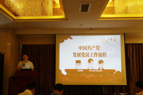 黨務(wù)主管張孝楠介紹發(fā)展黨員工作流程