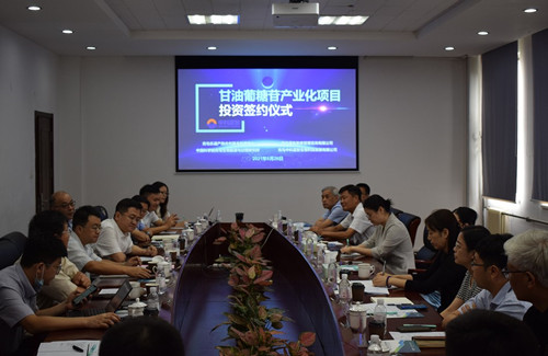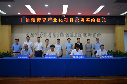 8月26日上午,樂通資本-藍(lán)色智庫-中科院青島能源所-中科藍(lán)智甘油葡糖苷產(chǎn)業(yè)化項(xiàng)目投資簽約儀式在研究所舉行。青島市科技局基礎(chǔ)研究處處長李欣,嶗山區(qū)政府副區(qū)長許哲,嶗山區(qū)委組織部副部長廉潔,嶗山區(qū)科創(chuàng)委科技創(chuàng)新部副部長賈文生,樂通資本董事長鄒晨陽、副董事長張少雄,藍(lán)色智庫(青島魯信馳騁創(chuàng)投)總經(jīng)理王奎旗,青島能源所黨委書記彭輝、副所長呂雪峰、黨委副書記許輝,中科藍(lán)智董事長張凱、總經(jīng)理段仰凱,研究所微生物制造工程中心、知識產(chǎn)權(quán)與成果轉(zhuǎn)化處等有關(guān)部門人員出席簽約儀式,共同見證四方簽約成功,達(dá)成千萬級戰(zhàn)略投資。