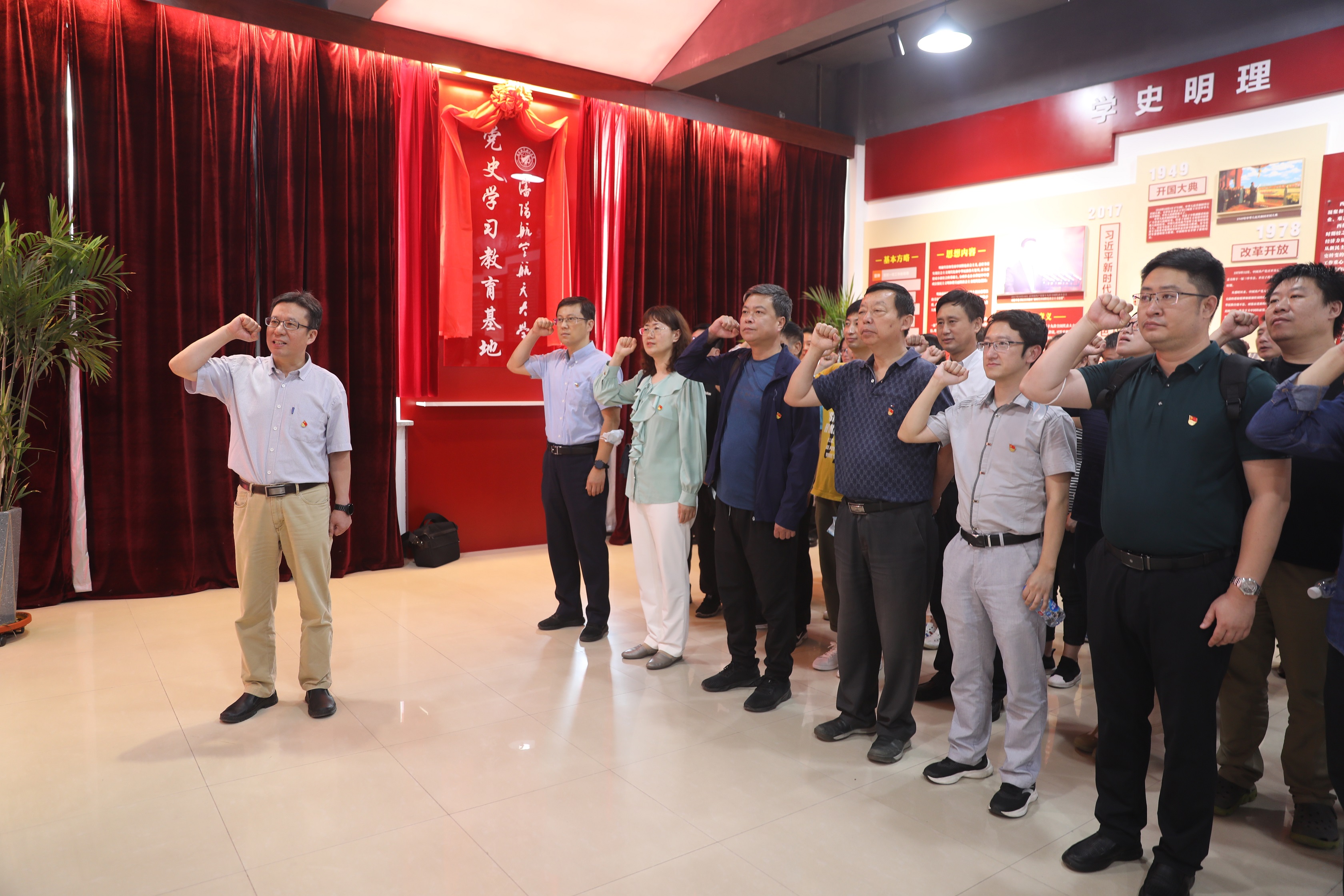 參觀過程中,黨員們深刻領(lǐng)悟到中國革命時(shí)期、新中國建設(shè)時(shí)期、改革開放時(shí)期和十八大以來中國共產(chǎn)黨人所匯聚凝結(jié)起來的偉大建黨精神,紛紛表示要把中國共產(chǎn)黨人精神譜系中一以貫之守初心、一如既往擔(dān)使命、一鼓作氣不松勁作為科研創(chuàng)新道路上的指引,讓偉大建黨精神引領(lǐng)科研報(bào)國的奮進(jìn)之路。在黨旗下,梁波帶領(lǐng)全體黨員再次莊嚴(yán)宣誓——為共產(chǎn)主義事業(yè)奮斗終身……