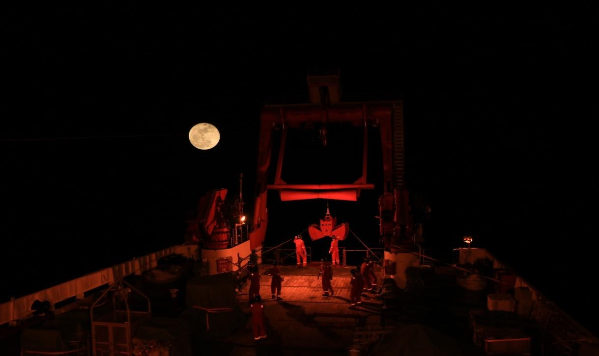 節(jié)日期間,船上組織了豐富多彩的文體活動,如集體合唱《歌唱祖國》、前甲板燒烤嘉年華、海上趣味運(yùn)動會等,現(xiàn)場笑聲不斷,氣氛熱烈,或濃或淡的鄉(xiāng)愁被沖散在空氣中。船上大廚為科考隊(duì)員們精心準(zhǔn)備的美食安撫著大家的腸胃,歡笑喧騰中感悟著海上一線科研人員的家國情懷。