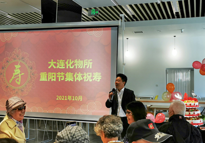 午餐中,伴隨著《祝你生日快樂》的樂曲聲,金玉奇和90歲的離休干部蔡海林共同切開了祝壽蛋糕,現(xiàn)場氣氛熱烈而歡快,老同志們個個笑逐顏開,臉上洋溢著幸福的喜悅。金玉奇感謝老同志為大連化物所的發(fā)展作出的不可磨滅的貢獻,祝福老同志們重陽節(jié)快樂,福如東海,壽比南山,家庭美滿,幸福安康!