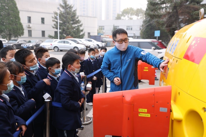 聆聽科研人員介紹“海斗一號”機(jī)器人