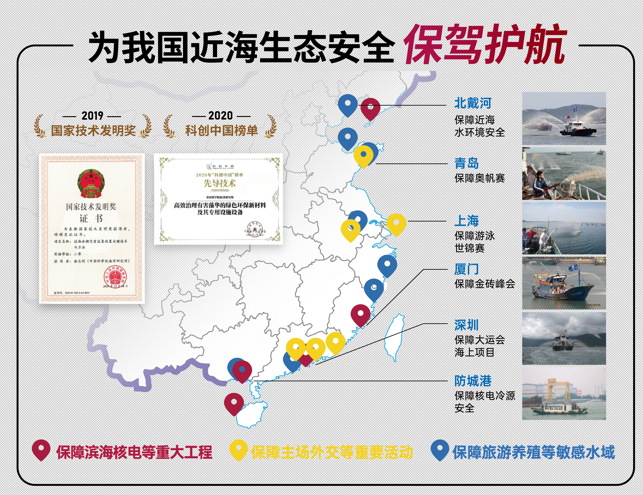 該技術(shù)列入中國(guó)赤潮治理國(guó)家標(biāo)準(zhǔn)(GB/T 30743-2014),納入中國(guó)沿海13省市赤潮應(yīng)急預(yù)案,在我國(guó)沿海從南至北20多個(gè)水域成功應(yīng)用,是目前國(guó)內(nèi)唯一得到現(xiàn)場(chǎng)大規(guī)模應(yīng)用的赤潮治理技術(shù),保障了我國(guó)近海核電、養(yǎng)殖、旅游等水域的生態(tài)安全,取得了顯著的經(jīng)濟(jì)和社會(huì)效益。