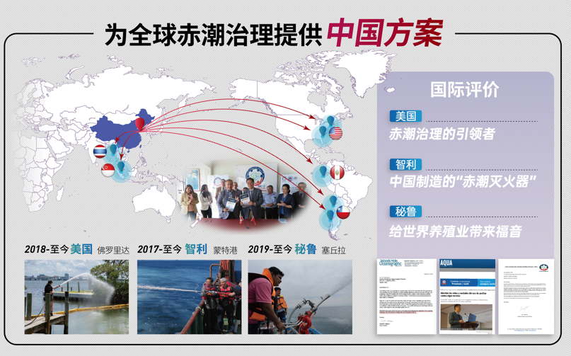 “十三五”期間,該技術(shù)通過(guò)了國(guó)際第三方的效果和安全評(píng)估,成功走出國(guó)門,助力“一帶一路”,在美國(guó)、秘魯、智利、新加坡等國(guó)家推廣應(yīng)用,被譽(yù)為中國(guó)制造的“赤潮滅火器”、“國(guó)際赤潮治理的引領(lǐng)者”,為全球赤潮治理提供“中國(guó)方案”。2019年該技術(shù)獲得中國(guó)“國(guó)家技術(shù)發(fā)明獎(jiǎng)二等獎(jiǎng)”,2020年作為中國(guó)科協(xié)首次評(píng)選出的全國(guó)50項(xiàng)先導(dǎo)技術(shù)之一,列入科創(chuàng)中國(guó)榜單。