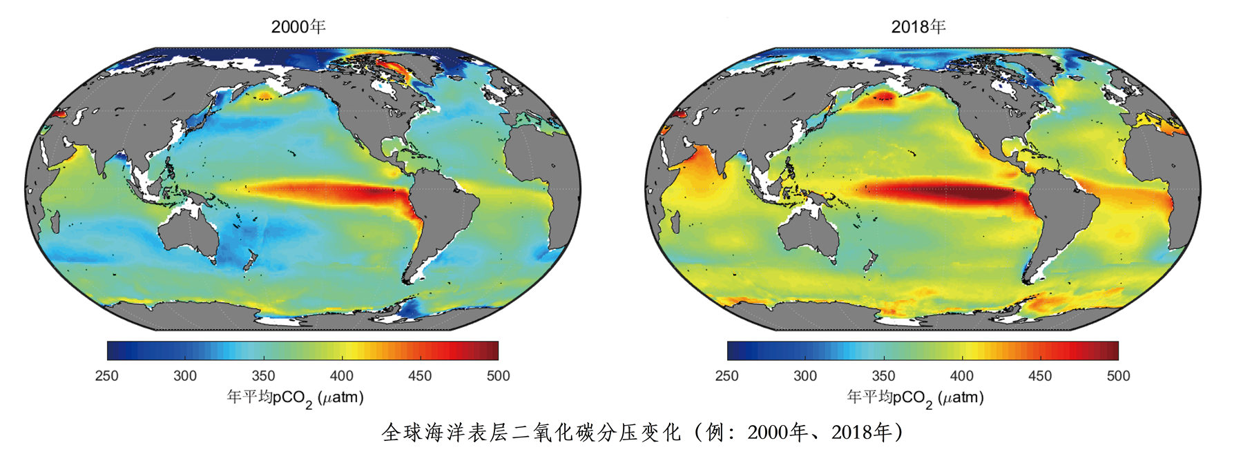 2000-2018年全球海洋表層二氧化碳分壓變化