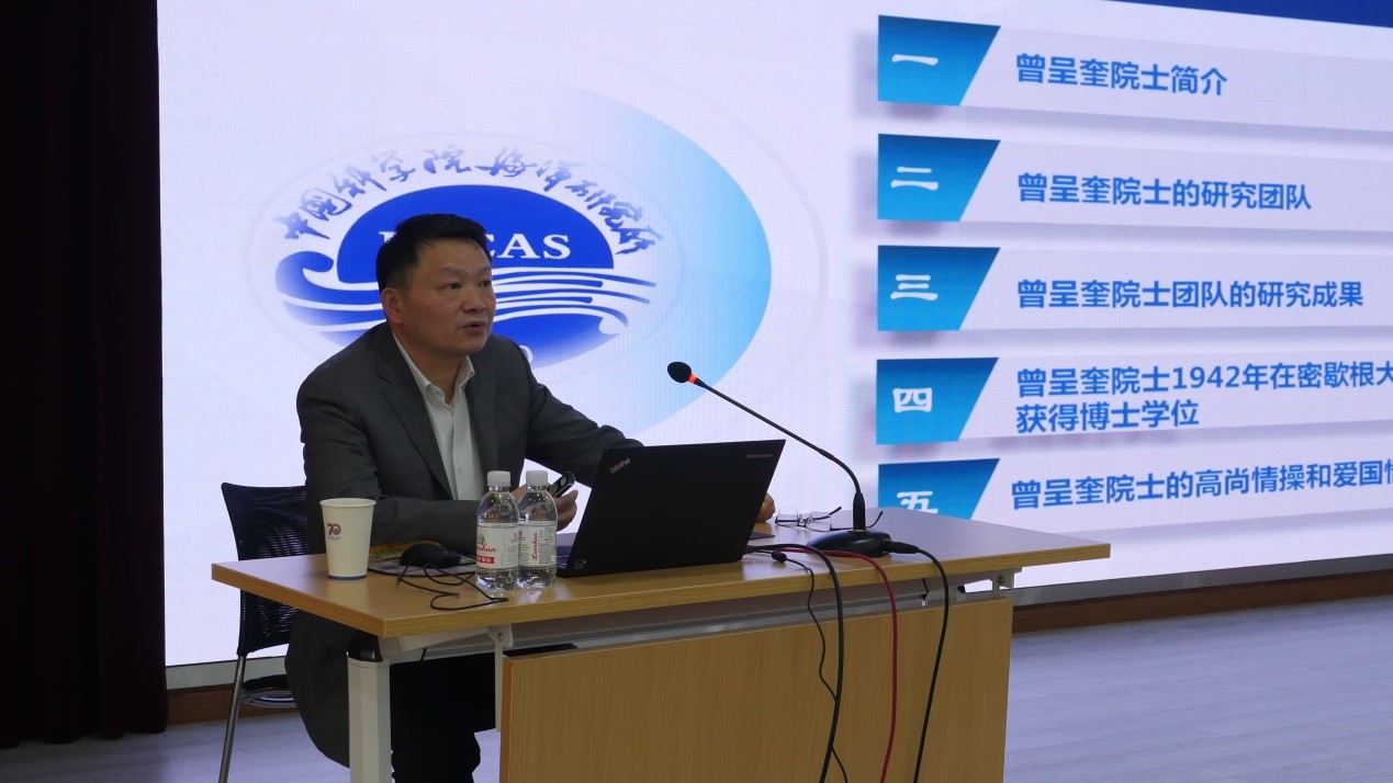 王廣策同志作了題為“曾呈奎院士和他的研究團(tuán)隊(duì)”的主題報(bào)告,重溫了“愛國(guó)敬業(yè)、耕海澤農(nóng)、前瞻布局、甘為人梯”的曾呈奎科學(xué)精神,一起緬懷了曾呈奎院士始終心系人民、報(bào)效祖國(guó),無私奉獻(xiàn)、奮發(fā)進(jìn)取,以促進(jìn)祖國(guó)發(fā)展為己任,全力投身國(guó)家海洋科教事業(yè)的感人事跡。報(bào)告結(jié)束時(shí),他指出,“時(shí)代輪替中,始終不變的是奮斗者的身姿;歷史坐標(biāo)上,始終清晰的是奮斗者的步伐”??茖W(xué)家精神是中國(guó)共產(chǎn)黨人精神譜系的組成部分,承載著黨的初心使命,中國(guó)夢(mèng)的內(nèi)核就是由像曾呈奎先生等這樣一代代華夏兒女的奮斗與汗水熔鑄而成。大力弘揚(yáng)科學(xué)家精神,就是要深入貫徹落實(shí)習(xí)近平總書記重要指示批示精神,向以曾呈奎院士為代表的老一輩科學(xué)家們學(xué)習(xí),以咬定青山不放松的執(zhí)著奮力實(shí)現(xiàn)既定目標(biāo),不斷推進(jìn)我國(guó)海洋科技事業(yè)率先發(fā)展。