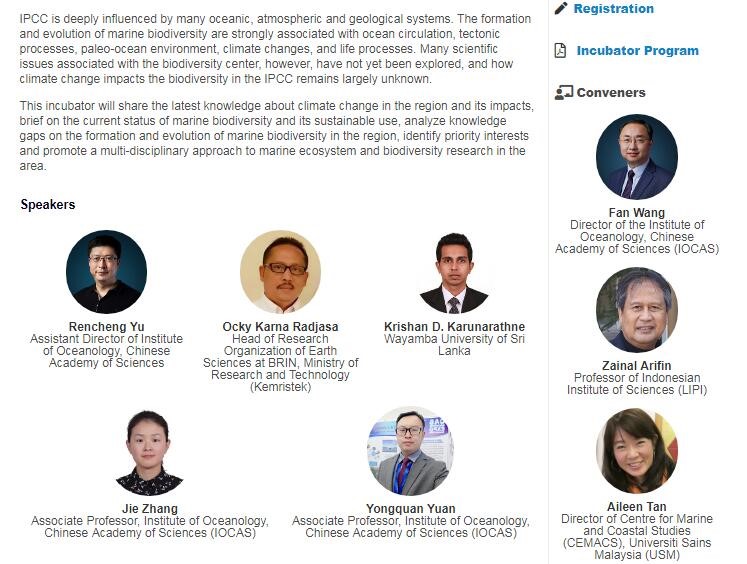為期兩天的會(huì)議包括高級(jí)別會(huì)議和17個(gè)名為“聯(lián)合國(guó)十年行動(dòng)孵化器”(Decade Action Incubator)的分會(huì)場(chǎng)。11月26日由中國(guó)科學(xué)院海洋研究所、印度尼西亞國(guó)家研究與創(chuàng)新機(jī)構(gòu)、馬來(lái)西亞大學(xué)聯(lián)合主辦了主題為Unlock the mysteries and opportunities about marine biodiversity in the Indo-Pacific Convergent Center(探秘印太交匯中心生物多樣性)的“印太交匯區(qū)”分會(huì)場(chǎng),超過(guò)70人參加了分會(huì)場(chǎng)的交流與討論。