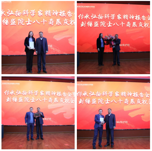 12月17日,中國科學院沈陽自動化研究所舉行了傳承弘揚科學家精神報告會暨封錫盛院士八十壽辰慶祝會。中國科學院沈陽分院副院長馬越紅,沈陽自動化所黨委書記兼副所長桑子剛,科學出版社東北分社社長張震,中國工程院院士封錫盛以及他培養(yǎng)的研究生代表,研究室主任、支部書記、年輕干部理論學習小組成員及在讀研究生100余人參加了會議。會議由綜合辦公室主任周船主持。