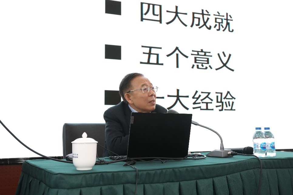 報告會上,孫學敏以《黨的百年奮斗重大成就和歷史經驗——學習黨的十九屆六中全會精神》為題作了專題報告,他通過介紹《中共中央關于黨的百年奮斗重大成就和歷史經驗的決議》的時代背景和意義,緊緊圍繞實現(xiàn)中華民族偉大復興這一主題,詳述建黨以來的三次飛躍和歷史成就,以及十個堅持的歷史經驗。報告內容詳實、理論與史料結合,為與會人員深入學習理解把握十九屆六中全會精神提供了指導。