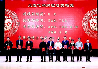 會議表彰了2021年度冠名獎。黨委書記金玉奇宣讀了冠名獎的表彰決定。會議采用頒獎詞和視頻播放相結(jié)合的形式,介紹了2021年度冠名獎獲得團隊和個人的突出事跡,并特別獎勵了榮獲2020年度國家自然科學一等獎的科研團隊。所長劉中民為獲獎團隊和個人頒獎。